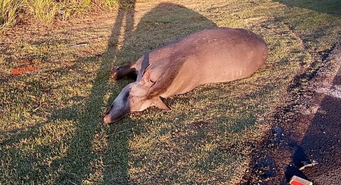 A imagem da anta – maior mamífero terrestre brasileiro – caída ao lado da rodovia entristece. Ela foi atropelada e morta, possivelmente durante a madrugada, nesta quinta-feira (16/06) na rodovia MS-080, já em Campo Grande, próximo à unidade do Detran. A cena deixou Márcia sensibilizada. “Eu moro em Corguinho e quando vim trabalhar hoje pela manhã, me deparei com esta cena. Até chorei com a pobrezinha dessa Anta morta”, revela a trabalhadora.