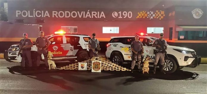 A apreensão foi registrada em ação conjunta entre o Tático Ostensivo Rodoviário (TOR), Polícia Federal e Canil do 8º Batalhão de Ações Especiais de Polícia (Baep).