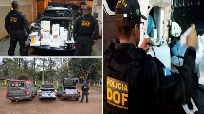 Já na MS-164, em Ponta Porã, os policiais do DOF apreenderam uma picape Fiat/Strada e um GM/Kadett transportando 106 celulares, 250 pen drives, uma caixa de som JBL, 400 pacotes de cigarros e 14 pneus. Os produtos, avaliados em aproximadamente R$ 451 mil, foram entregues à Receita Federal, em Ponta Porã.
