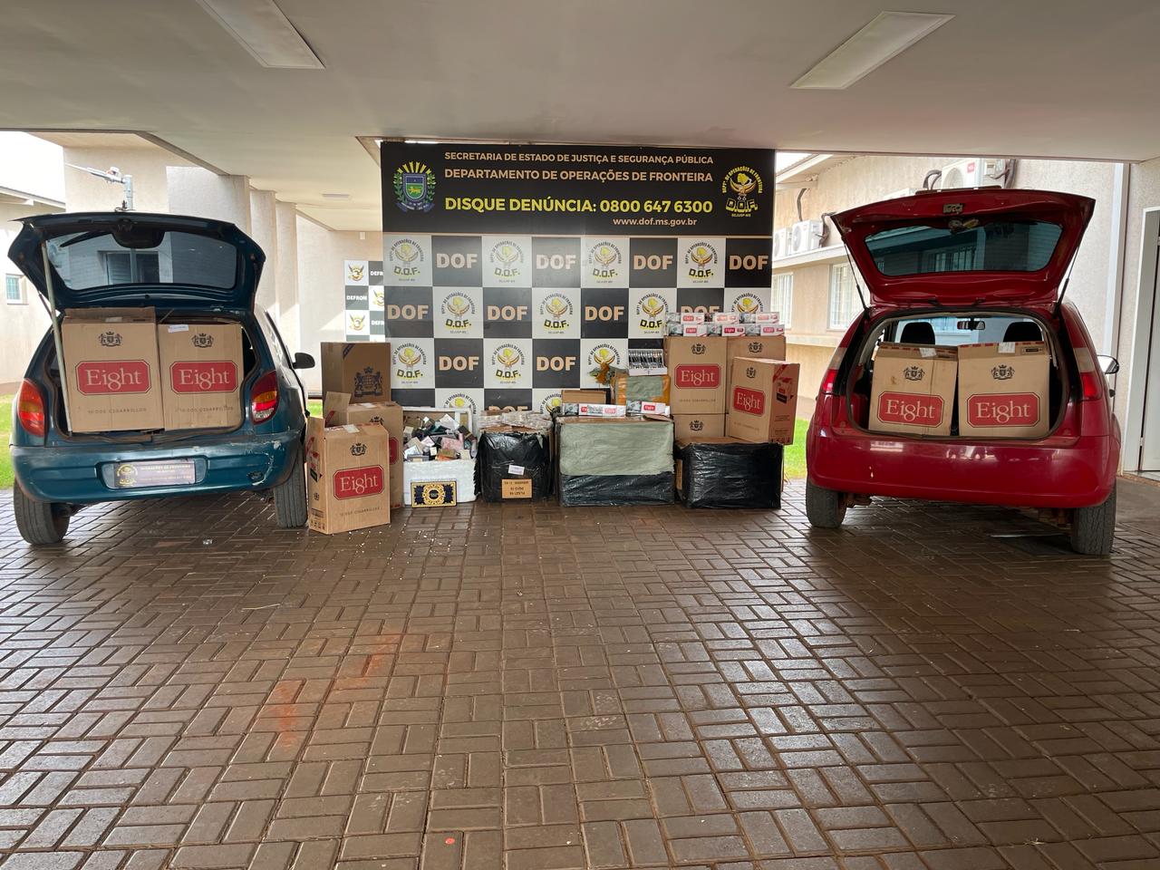 Policiais militares do DOF (Departamento de Operações de Fronteira) apreenderam nesta quinta-feira (04), na BR-463 em Dourados, dois veículos carregados com mais de R$ 340 mil em materiais de contrabando e descaminho. Dois homens de 52 e 55 anos foram presos em flagrante.