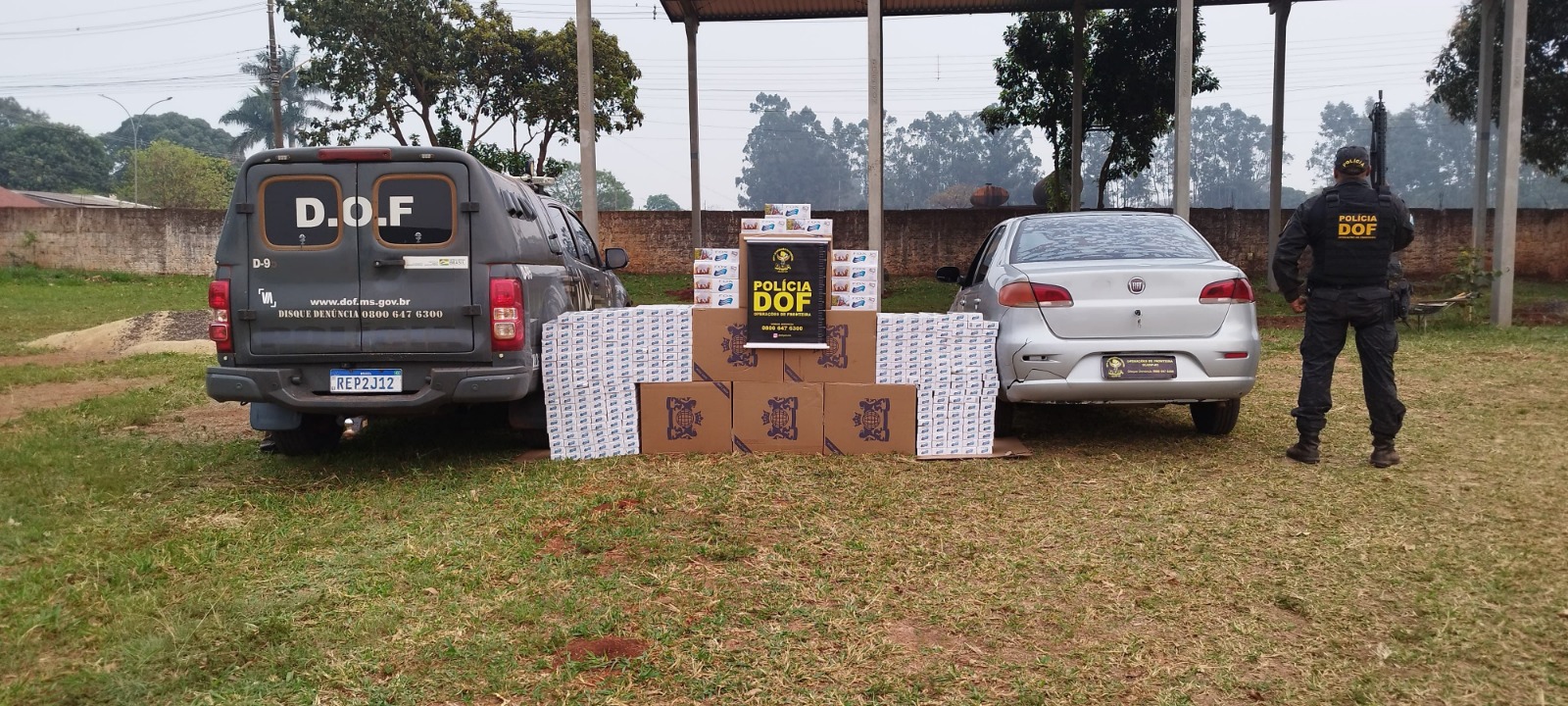 Policiais militares do Departamento de Operações de Fronteira (DOF) apreenderam, na madrugada desta quinta-feira (26/09), um veículo Fiat Siena de cor prata, carregado com 600 pacotes de cigarros contrabandeados do Paraguai. A ação ocorreu durante bloqueio policial para fiscalização na rodovia MS-164, na área rural de Ponta Porã.