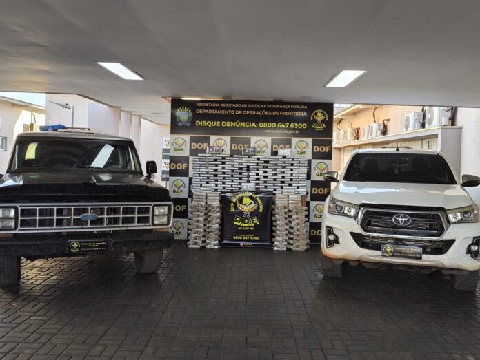 Policiais do Departamento de Operações de Fronteira (DOF) apreenderam, na manhã da última quinta-feira (14/11), 245 quilos de cocaína em uma ação na rodovia MS-382, na área rural de Ponta Porã, Mato Grosso do Sul. A operação resultou na prisão de dois homens, acusados de tráfico de drogas, e gerou um prejuízo estimado de R$ 18,4 milhões ao crime organizado.