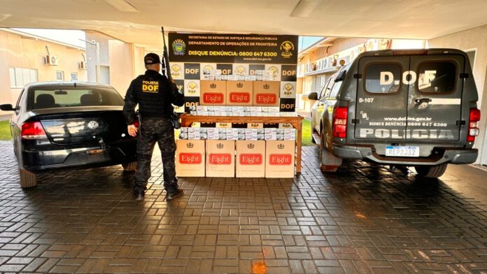 Policiais do Departamento de Operações de Fronteira (DOF) apreenderam, neste sábado (23/11), em Maracaju, duas cargas de produtos contrabandeados do Paraguai. As ações ocorreram nas rodovias MS-460 e MS-164, onde dois veículos abandonados foram encontrados transportando agrotóxicos e cigarros.