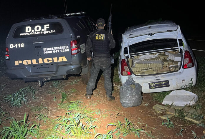 Policiais militares do Departamento de Operações de Fronteira (DOF) apreenderam, neste domingo (30/03), quase 400 quilos de maconha e haxixe em Maracaju. A droga estava em um veículo Renault Logan. Na ação, ninguém foi preso.