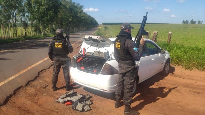 Policiais militares do DOF apreenderam, nesta sexta-feira (23/05), em Tacuru, mais de 350 quilos de entorpecentes transportados em um Ford Fiesta. Um homem de 26 anos conduzia o veículo.