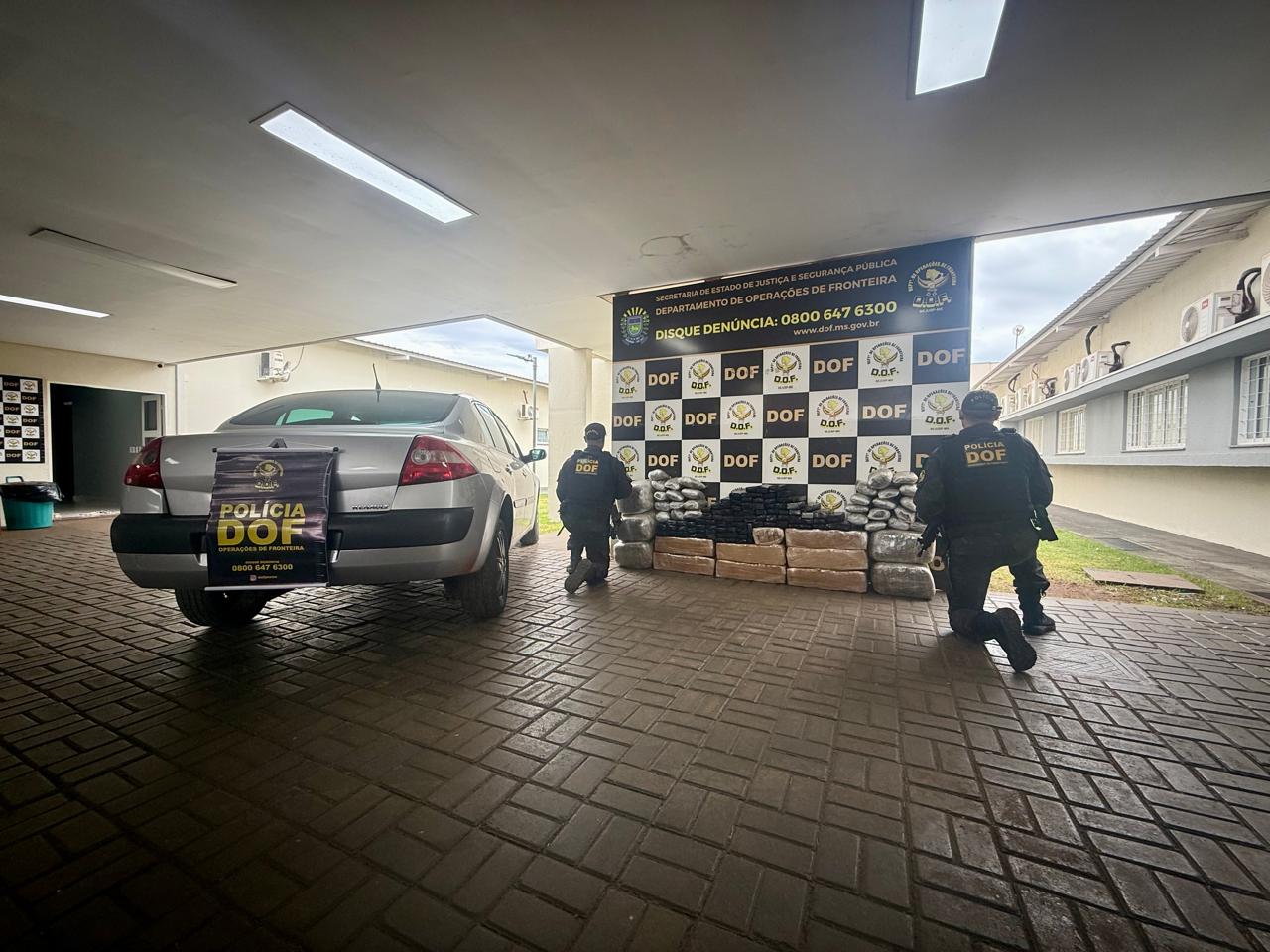 Durante a abordagem, os policiais verificaram que o veículo transportava 260 quilos de maconha e 43 de skunk. O material estava distribuído dentro do automóvel e ocupava parte dos bancos e do porta-malas.