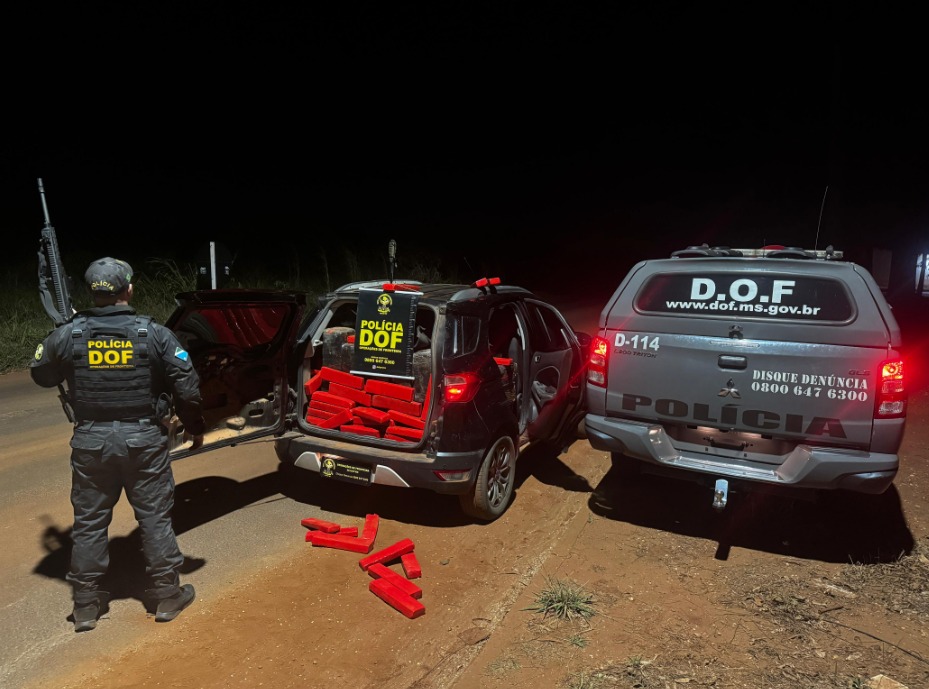 O Departamento de Operações de Fronteira (DOF) deteve dois suspeitos na noite desta quarta-feira (09/07), na MS-270, próximo ao distrito de Itahum, em Dourados. Um homem de 26 anos e um adolescente de 17 transportavam 520 quilos de maconha em um Ford Ecosport com registro de roubo. A equipe interceptou o veículo após tentativa de fuga.