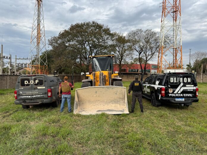 O Departamento de Operações de Fronteira e a Delegacia Especializada em Repressão aos Crimes de Fronteira recuperaram neste sábado (23/08), em Aral Moreira, uma pá carregadeira Volvo furtada em Caarapó.
