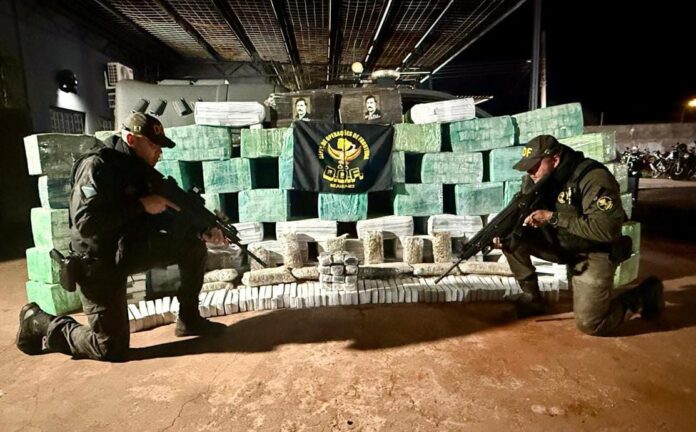 O material apreendido, avaliado em aproximadamente R$ 6 milhões, seguiu para a Delegacia de Polícia Civil de Amambai.