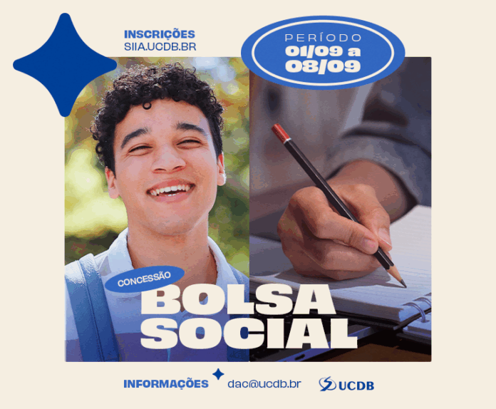 A Universidade Católica Dom Bosco (UCDB) lançou nesta segunda-feira (01/09) o edital do processo seletivo para concessão de bolsa de estudo social para 2025B para primeira graduação. O prazo para inscrição vai até a próxima segunda-feira (8) e será por meio de formulário eletrônico socioeconômico preenchido exclusivamente pelo Sistema Integrado de Informação Acadêmica (SIIA).