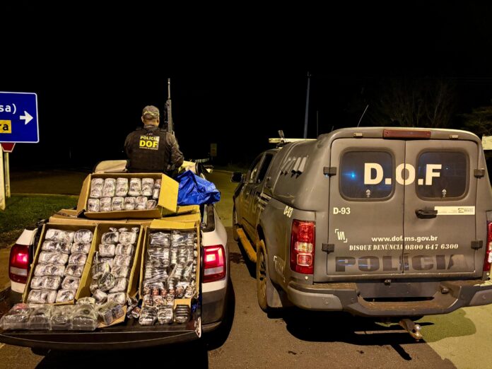 Policiais militares do Departamento de Operações de Fronteira realizavam bloqueio na BR-487, próximo ao posto fiscal Foz do Amambai, nesta quarta-feira (01/10) quando abordaram um veículo VW Saveiro conduzido por uma mulher. A motorista, de 29 anos e nacionalidade paraguaia, informou que transportava materiais hospitalares, mas demonstrou nervosismo e chamou a atenção dos militares durante a conversa inicial.