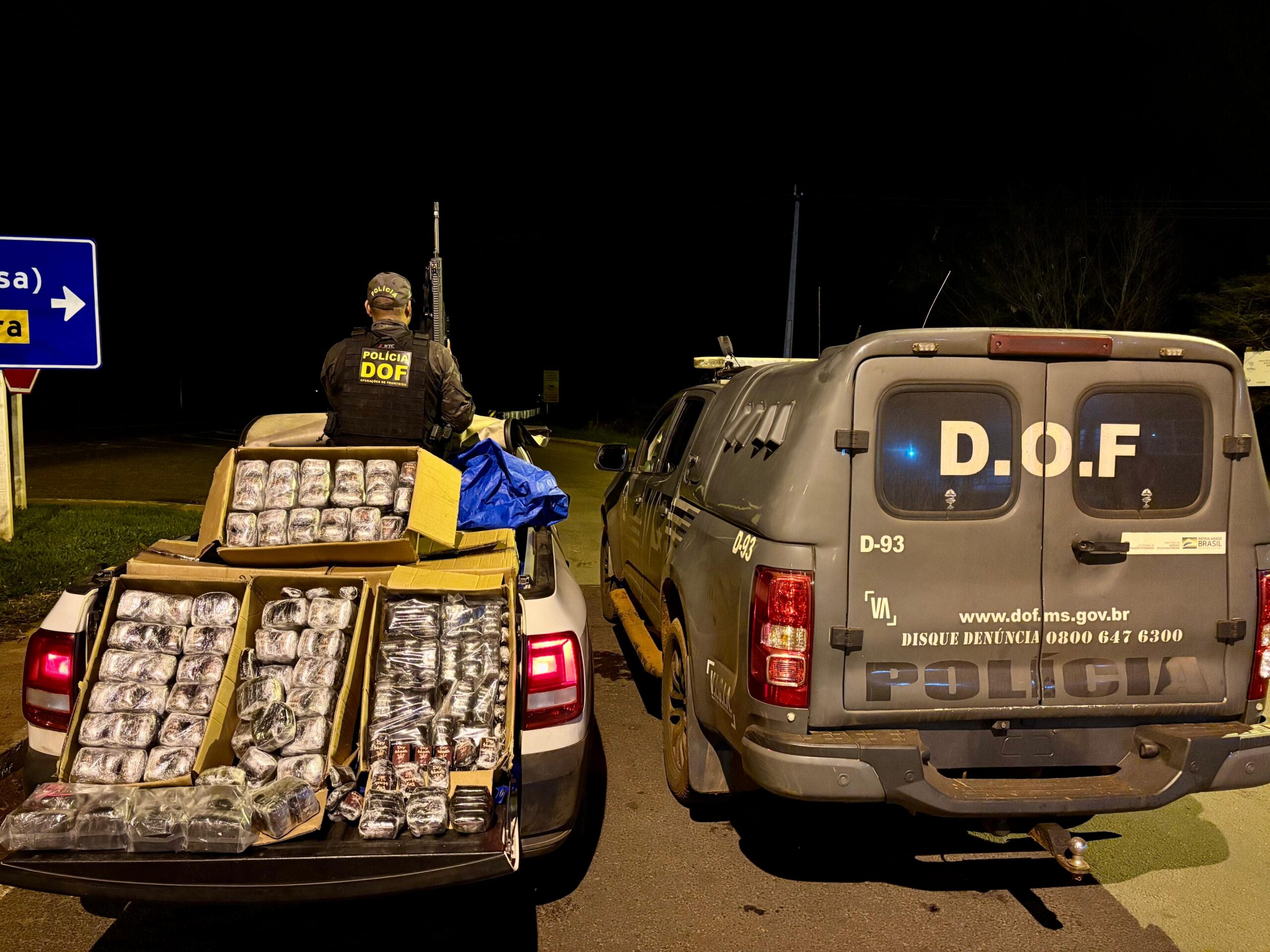 DOF apreende veículo e prende mulher com quase 100 quilos de haxixe em Naviraí
