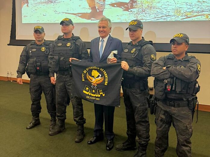 O Departamento de Operações de Fronteira recebeu, na manhã desta sexta-feira (07/11) homenagem do governador de Goiás, Ronaldo Caiado, em reconhecimento ao trabalho desenvolvido no enfrentamento aos crimes transfronteiriços em Mato Grosso do Sul.