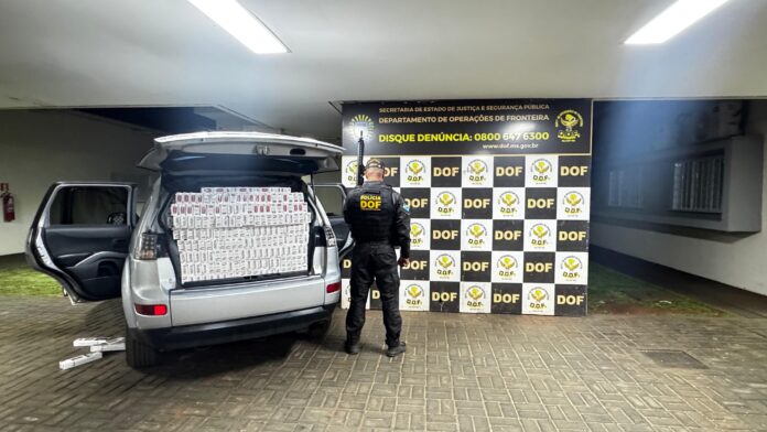 Policiais do Departamento de Operações de Fronteira apreenderam um veículo carregado com 1.800 pacotes de cigarros de origem paraguaia na rodovia BR-376, em Deodápolis, na segunda-feira (10/11). Um homem de 28 anos foi preso em flagrante durante a ação.