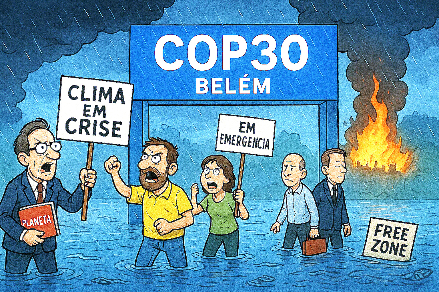 A COP30 em Belém, celebrada como a cúpula do clima mundial, revelou-se — para quem tem olhos para ver — menos uma reunião de estadistas preocupados com o futuro do planeta e mais um teatro apocalíptico cheio de tropeços. E não me refiro apenas às profecias climáticas, mas ao show concreto de água, fogo, dívida e retórica.