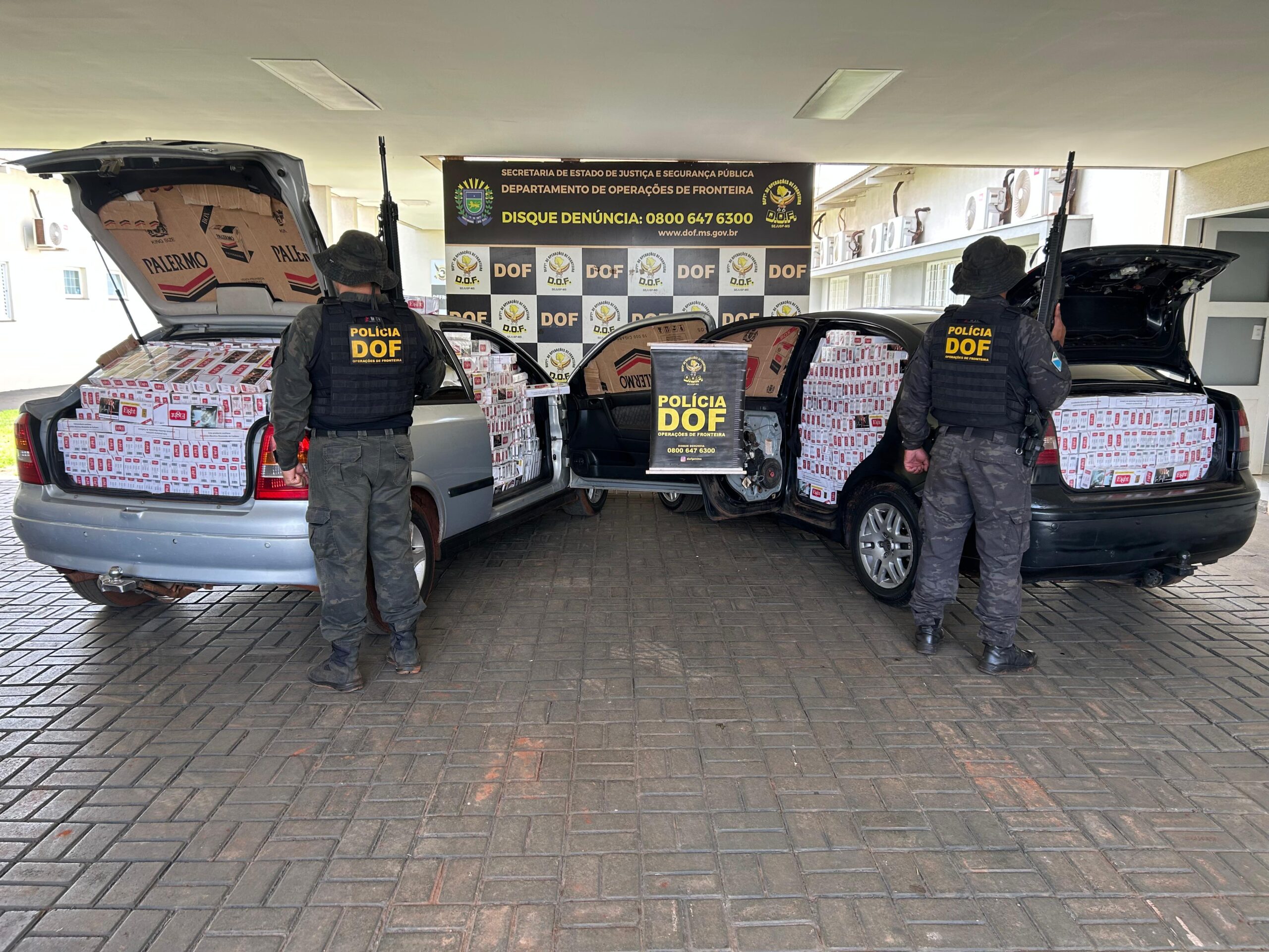 Policiais militares do Departamento de Operações de Fronteira apreenderam, neste sábado (07/12), em Rio Brilhante, dois veículos carregados com cigarros contrabandeados do Paraguai durante patrulhamento na BR cento e sessenta e três.