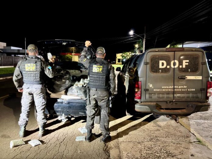 No interior do automóvel, os policiais encontraram 105 Kg de maconha, 30 Kg de skunk e 10 Kg de haxixe marroquino. A equipe encaminhou os entorpecentes à Delegacia da Polícia Civil de Amambai, e a avaliação da apreensão alcança cerca de R$ 1,3 milhão.