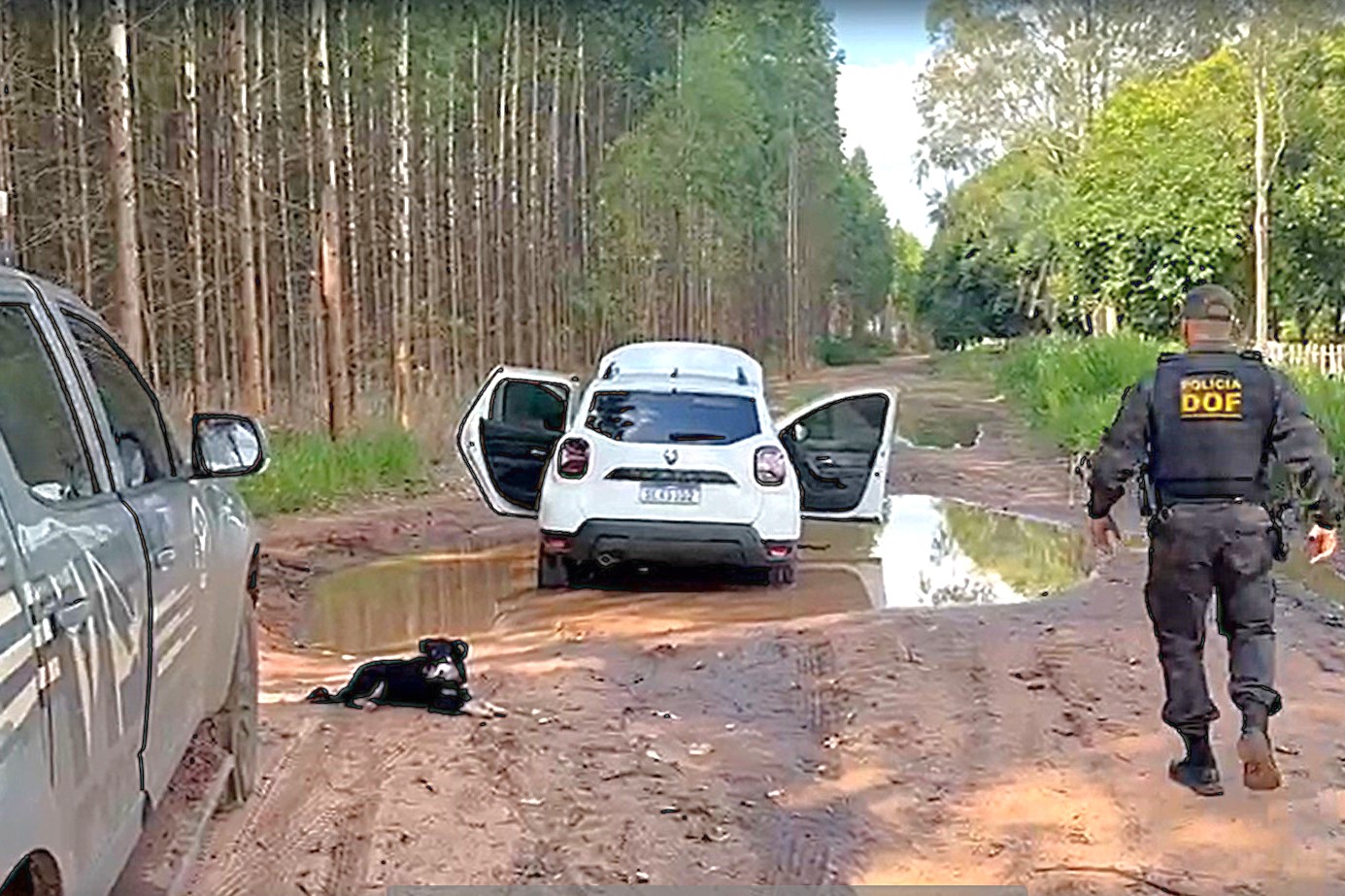 Durante a ação, a equipe visualizou um veículo Renault Duster atolado em meio à via. Ao se aproximarem do automóvel, os policiais perceberam sinais de abandono e iniciaram varredura na área.