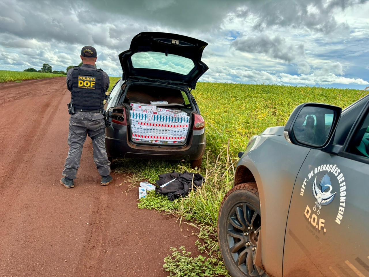 Durante a vistoria no interior do veículo, os militares localizaram diversas caixas de cigarros contrabandeados do Paraguai. Foram realizadas buscas nas proximidades, porém nenhum suspeito foi localizado.