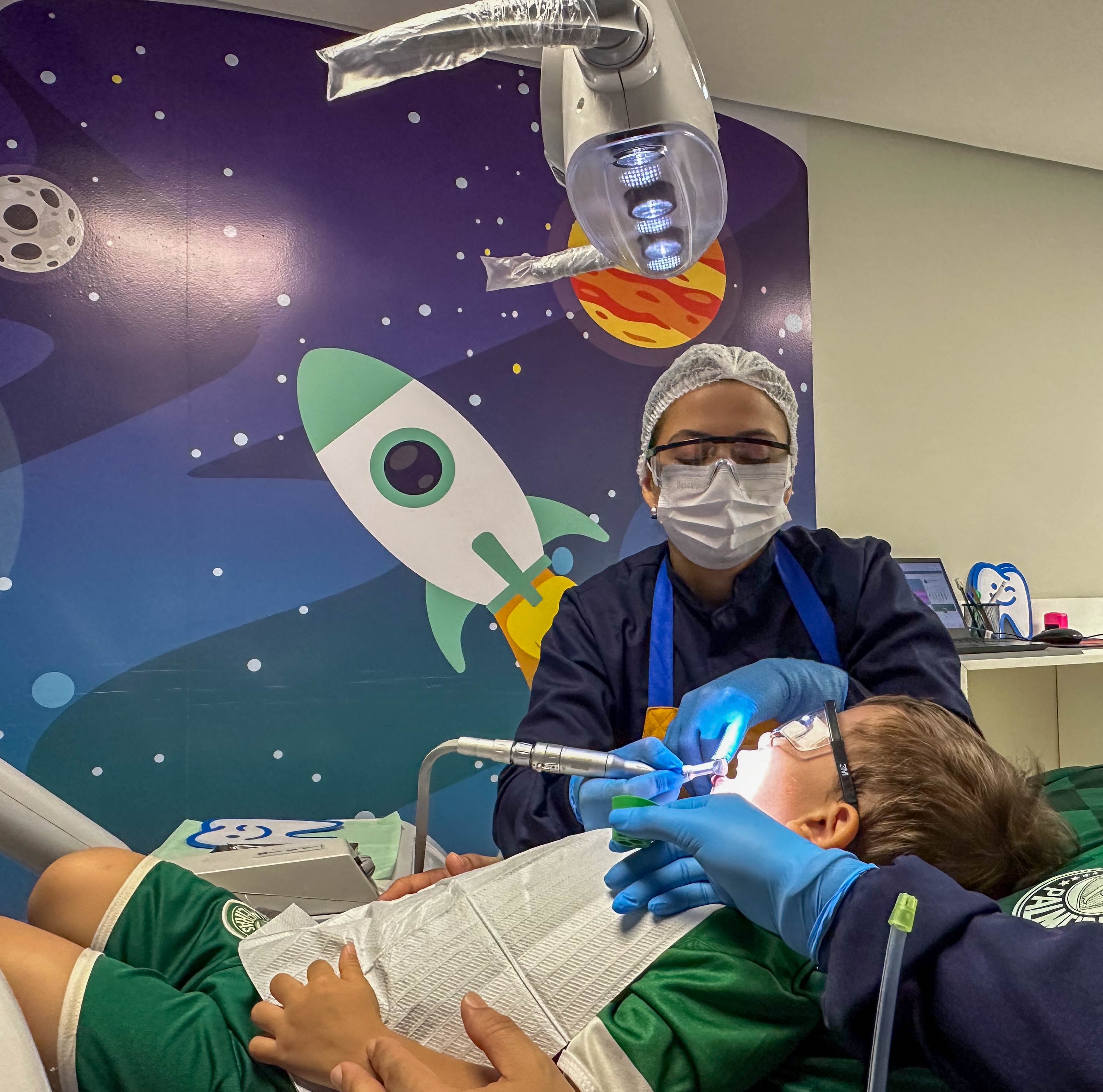 Na unidade do Sesc Dourados, o atendimento odontopediátrico é realizado de forma lúdica e acolhedora, buscando transformar a ida ao dentista em uma experiência positiva para as crianças. O ambiente é adaptado e o acompanhamento é conduzido com linguagem acessível, estímulo ao cuidado e orientação tanto para os pequenos quanto para os responsáveis.