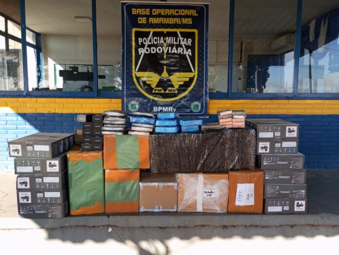 Nesta quinta-feira (05/02), por volta das 5h30, a Polícia Militar Rodoviária (BPMRv), por meio da Base Operacional de Amambai, realizou a apreensão de mercadorias de origem estrangeira sem comprovação fiscal durante fiscalização de trânsito na rodovia MS-386, km 47, no município de Aral Moreira.