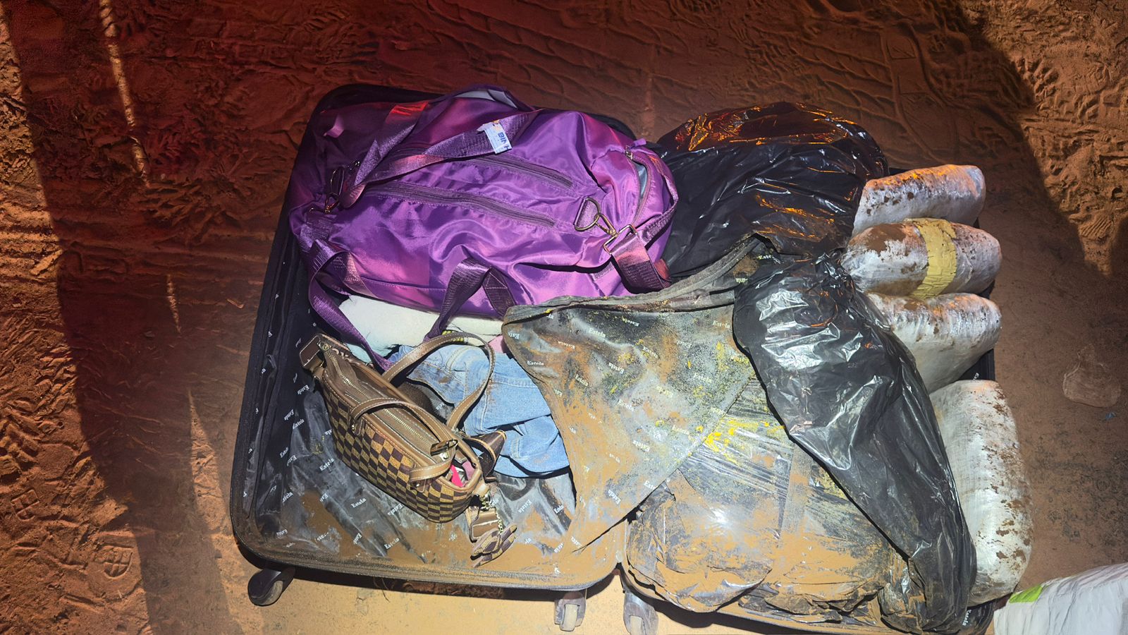 Dentro da mala, os policiais localizaram 11 quilos de substância análoga à maconha do tipo skunk. O material estava distribuído em 10 invólucros.