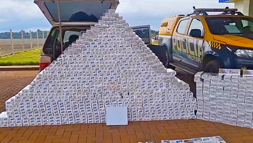 Durante vistoria no automóvel, os policiais localizaram 500 pacotes de cigarros da marca Fox, 250 unidades de cigarros da marca Euro, 24 pneus de origem estrangeira e um equipamento de internet via satélite Starlink. Os produtos não possuíam documentação fiscal nem comprovação de pagamento de tributos.