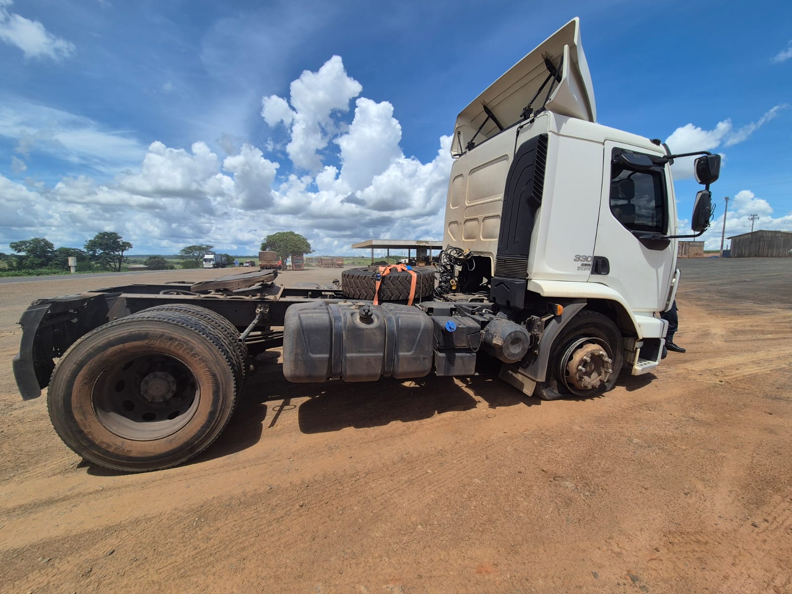 No local, a equipe encontrou um caminhão Volvo VM 330 de cor branca. O veículo estava apenas com o cavalo mecânico, sem a carreta acoplada, e apresentava avarias. Os policiais realizaram verificação nos sistemas e constataram registro de furto. A ocorrência consta em registro na cidade de Foz do Iguaçu, no Paraná, no início do mês.