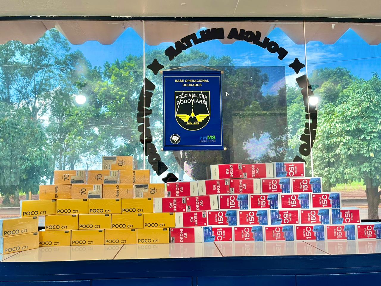 Policiais do Batalhão de Polícia Militar Rodoviária (BPMRv) apreenderam, na manhã desta quarta-feira (25/03), mercadorias de origem estrangeira avaliadas em aproximadamente R$ 30 mil durante fiscalização na rodovia MS-379, no município de Dourados. A carga incluía 50 aparelhos celulares de diversas marcas e perfumes adquiridos no Paraguai sem regularização fiscal.